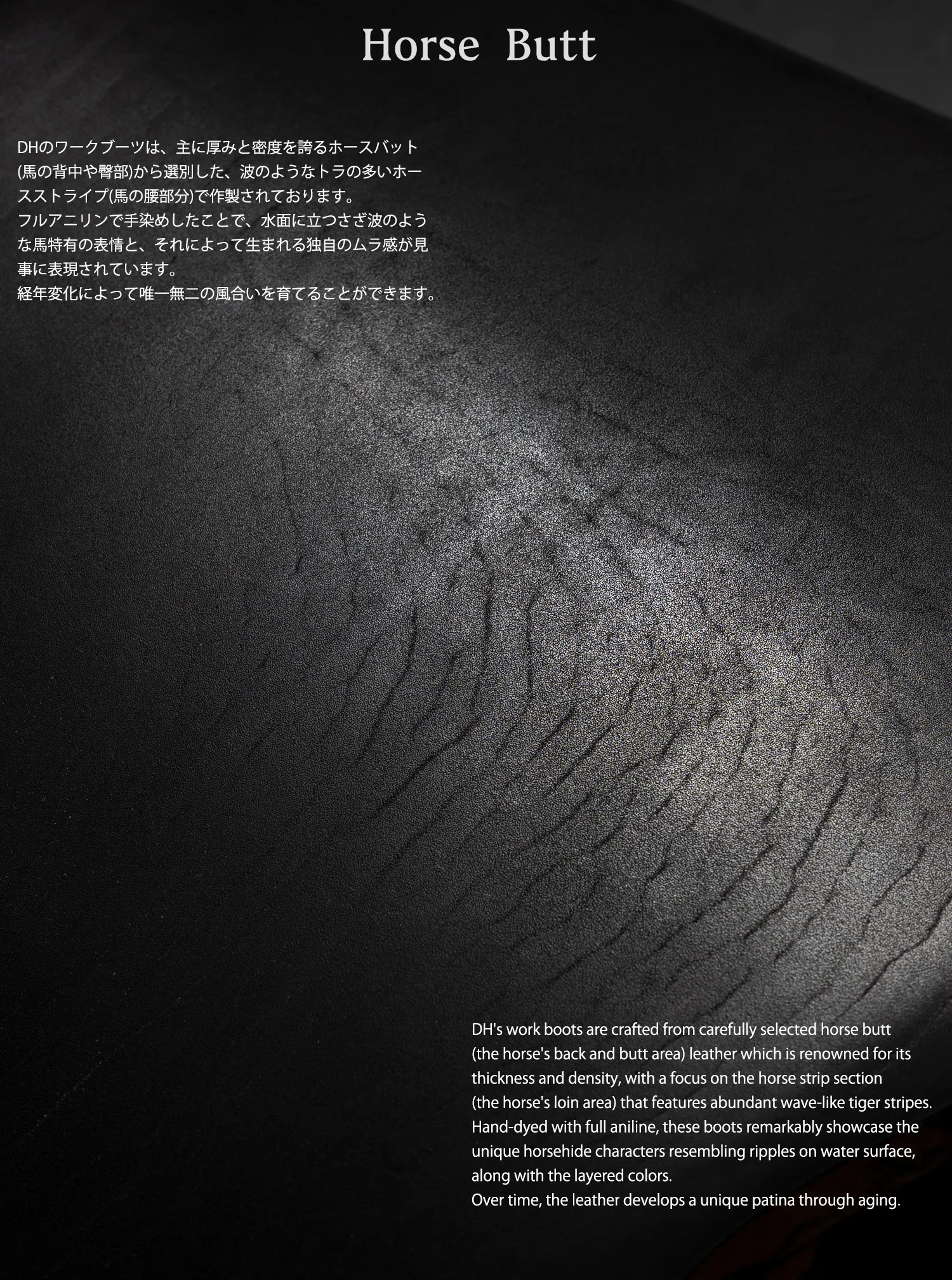 頂級植鞣馬皮 (Vegetable Tanned Horsehide)Double Helix 最大的賣點在於其引以為傲的皮料。702 型號通常採用頂級的植鞣馬皮製作(包含馬皮內裡)。植鞣皮革的毛細孔保留完整,隨著穿著時間增加、經過油脂滋潤與日曬,會產生非常迷人的經年變化(Aging),皮革會越穿越軟並貼合腳型,呈現出獨特的舊化光澤與茶芯效果。